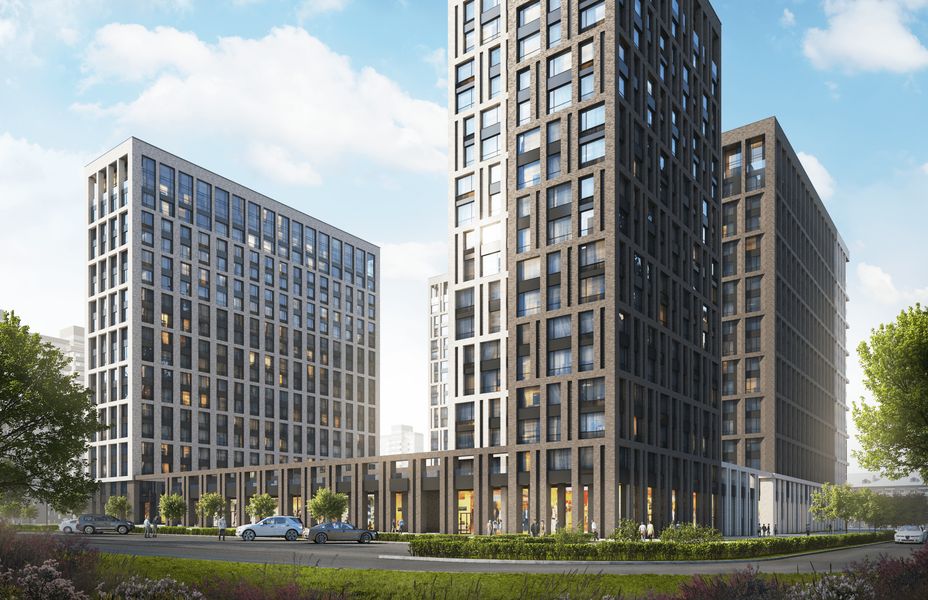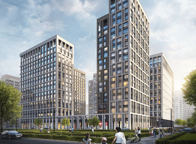 4 монолитно-кирпичных корпуса переменной этажностью (от 18 до 20 этажей). Замысловатые внешние фасады выложены клинкерной плиткой, керамическими и металлическими пластинами. Чётные и нечетные этажи чередуются панорамным и стандартным остеклением окон. Прогулочные дорожки внутреннего двора имеют подсветку. Установлены парковочные места для велосипедов. Для дополнительного удобства жильцов, входные группы на уровне земли, без лестниц и пандусов. Каждый подъезд будет оборудован зоной ресепшн, колясочными комнатами. Будут установлены современные бесшумные лифты, с функцией «приоритетный доступ» для жителей пентхауса. До конца 2019 года планируется ввести в эксплуатацию жилые корпуса.