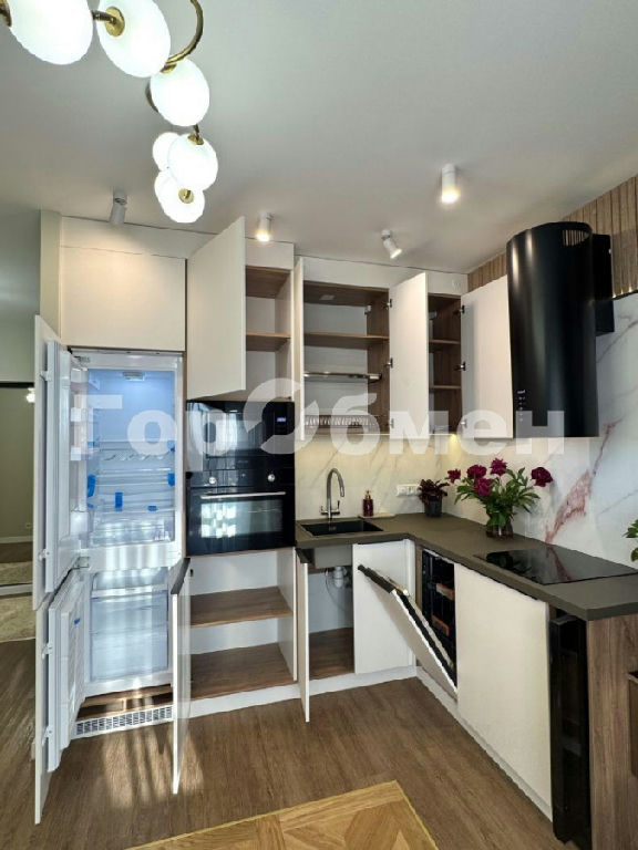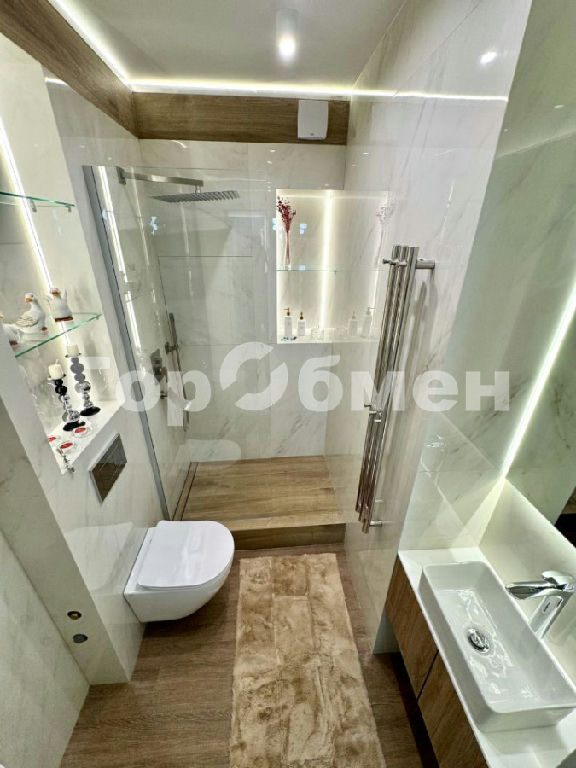 - Установлена гардеробная система и вместительные шкафы с подсветкой в каждой комнате .
